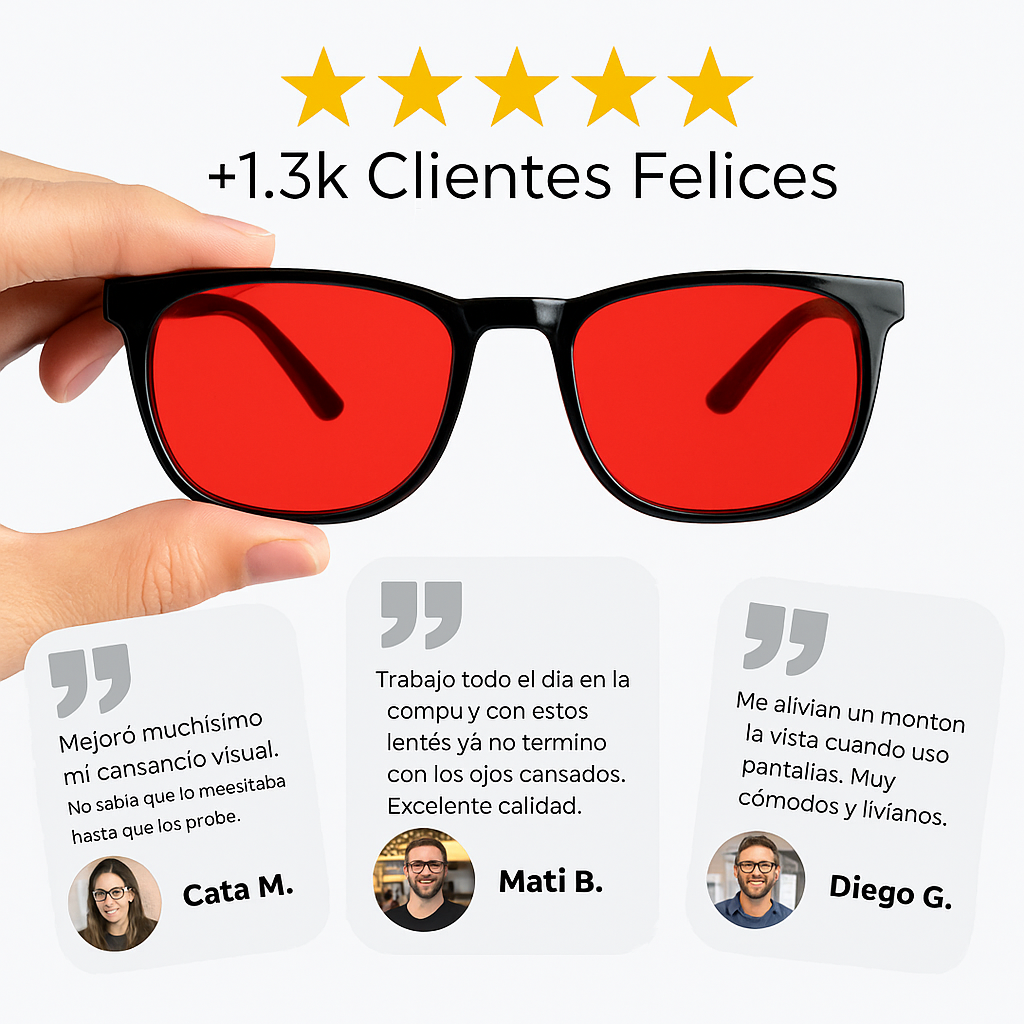 De nuestros clientes afirma que con los lentes de lente rojo, tarda menos en dormirse y se levanta con más energía.